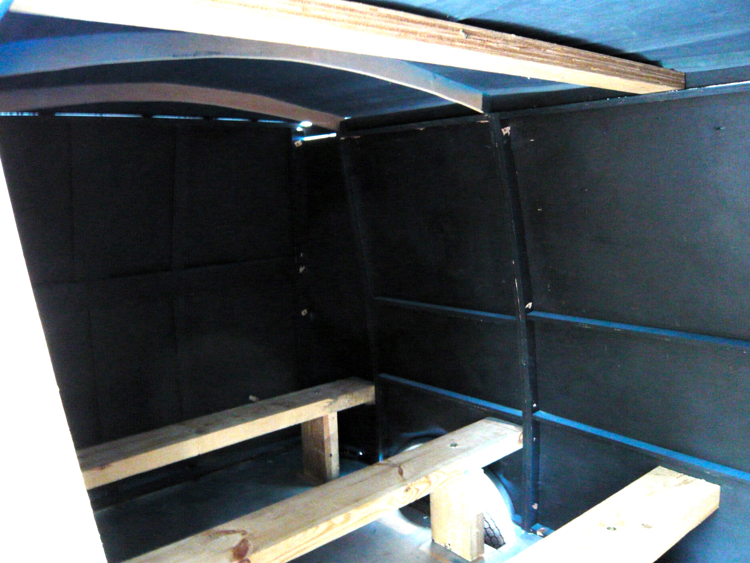 Dans un poste de douane de Eupen (B/D) une camionnette (bois, peinture) reçoit des passagers à la manière des taxi-bus de Kinshasa. A l'intérieur est projeté la vidéo «Comment poussent les cacahuètes ?».